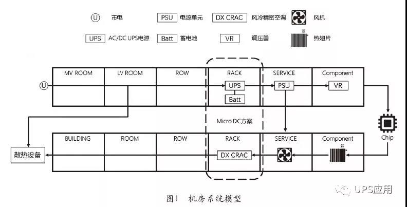 圖1是一個機房的系統模型。發生停電故障時,蓄電池起到應急供電的作用。數據機房中可能90%以上的電池都很少在生命周期內碰到一次故障停電,但是電池必須時刻處于正常狀況,否則停電時電池無法放電,后果將會非常嚴重。所以電池保持在一個健康可用的狀態,才能保證數據中心的供電安全。